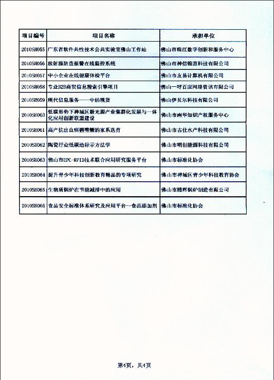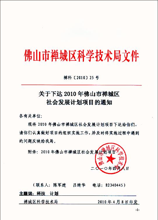 榮獲2010年禪城區(qū)科技計劃專項資金項目